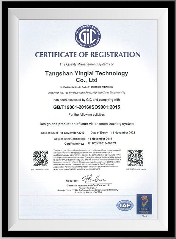 Tangshan Yinglai Technology Co.,Ltd was founded in 2013, and our headquarters is located in the high-tech center of Tangshan, Hebei. Our main product is laser vision system, and we focus on its research, development, production. We are a one-stop solution company, which means we are not only provide intelligent solutions for industrial robots or special automatic machines in the fields of welding, cutting, handling, assembling, polishing, spraying, but also offer design, process test, system integration, technical consultation and other customer services.